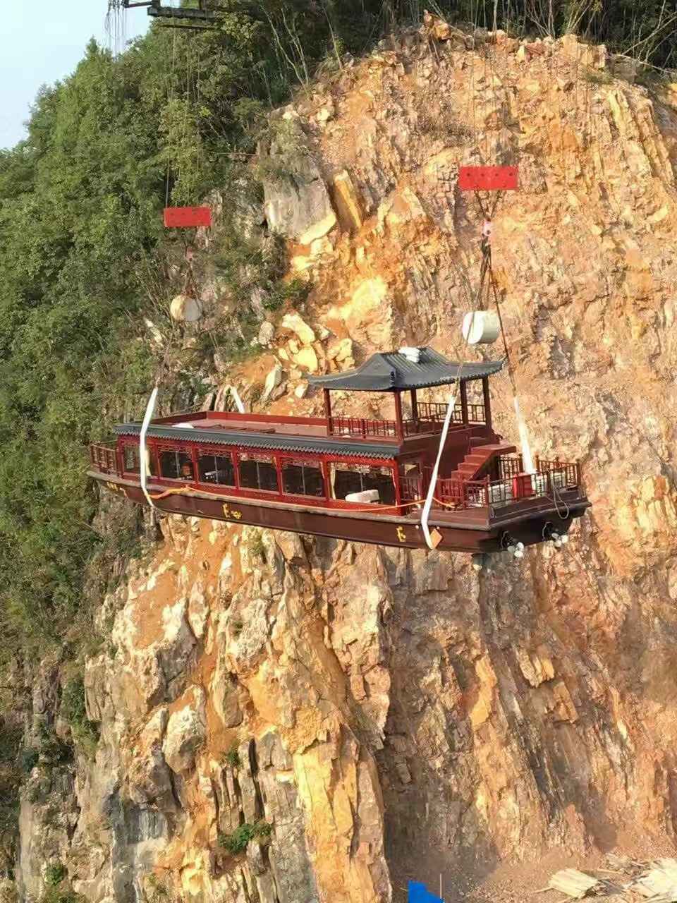 滑车助力玻璃索桥建设