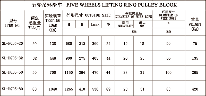 五轮吊环滑车